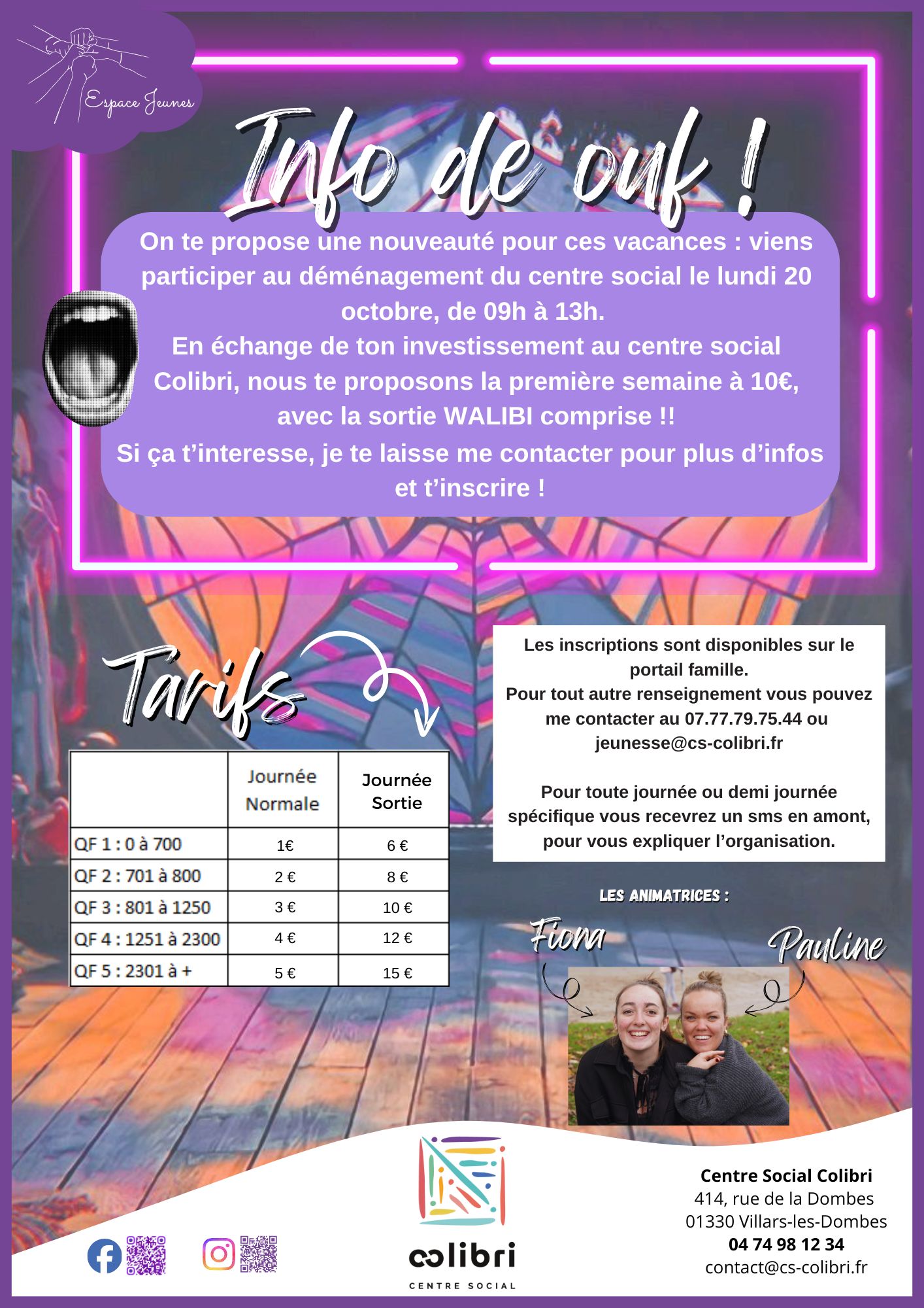 Les vacances d'automne approchent à grands pas. A cette occasion découvrez le programme proposé par le Centre Social Colibri pour vos enfants.